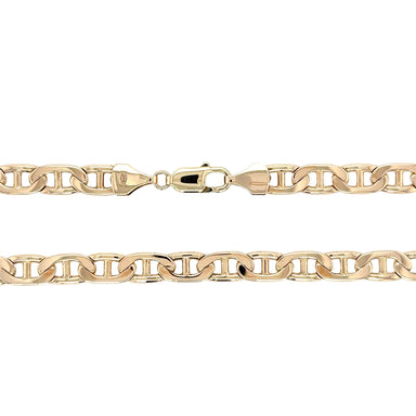 Pre- owned. A 9ct yellow gold anchor link chain. Comprising solid plain polished flat links. Secured by a lobster trigger fastener. Unisex. The eve...