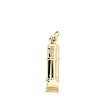 Pre- owned. A 9ct yellow gold classic whistle pendant/ charm. This novelty traditional train guard's whistle is suitable to be worn on a chain as a...