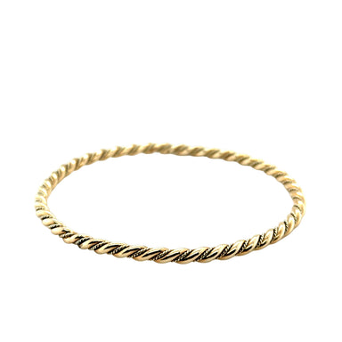 Pre- owned. A secondhand 9ct yellow gold torque bangle in the traditional style, made of a solid, 3mm wide plain polished round wire construction w...