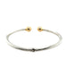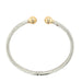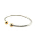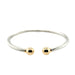 Pre- owned. A 9ct white gold torque bangle with contrasting yellow gold ball ends. The hollow white gold main body features grooved twist detail with contrasting plain polished yellow gold ball ends. It featured a central hinge allowing for easy fitment on and off the wrist.