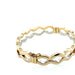 Pre- owned. A 9ct yellow gold wave bangle. Made of a plain polished hollow construction this bangle comprises two rows with cut out centre. Hinged opening allows easy fitting and removal from the wrist. Secured by a figure 8 catch.