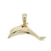 Pre- owned. A 9ct yellow gold dolphin pendant made of solid plain polished gold in a leaping style. Fitted with a tapered bale allowing it to be worn on a chain up to 10mm wide. An excellent quality heavyweight gold dolphin pendant.