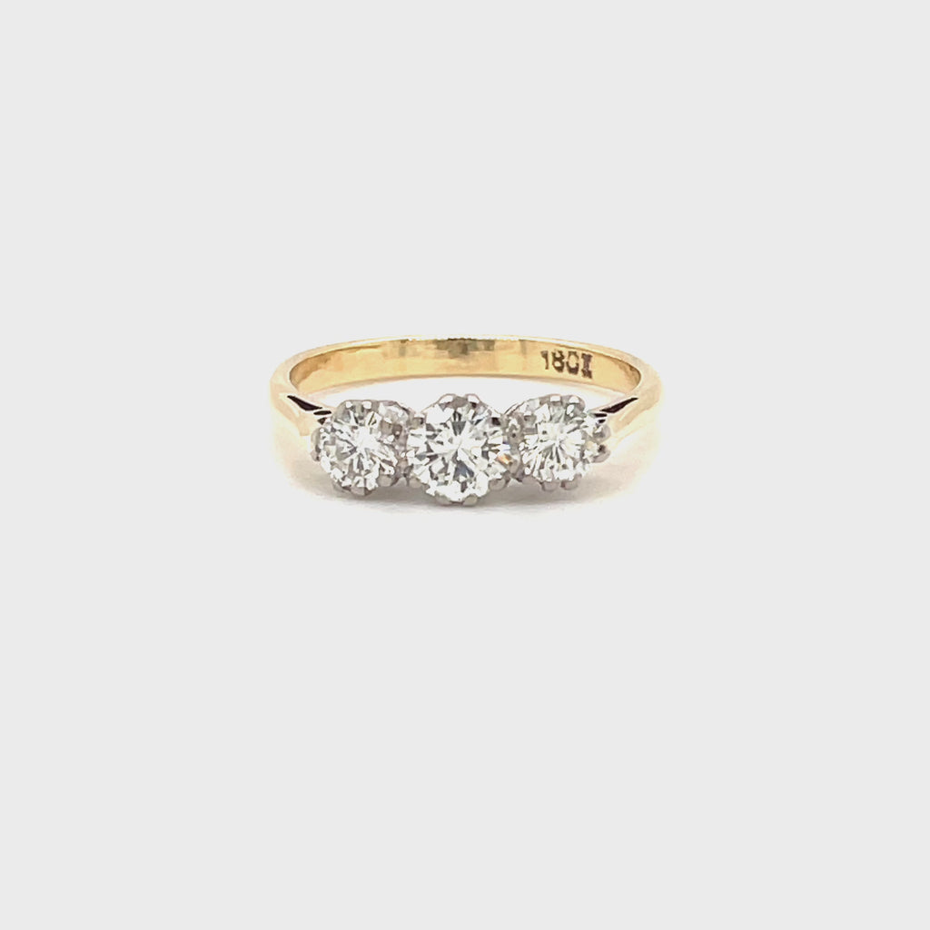 Vintage 18ct Yellow Gold 0.75ct Diamond Three Stone Ring SOLD